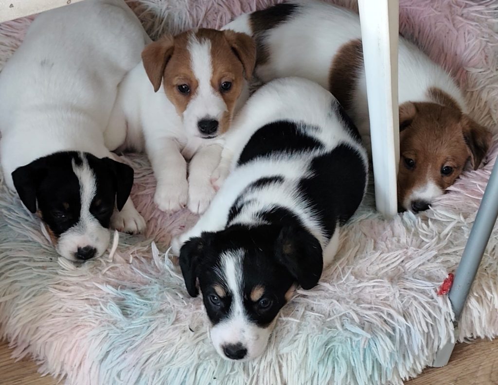 7 Welpen, tricolor, weiss/rot, glatt/broken/rau