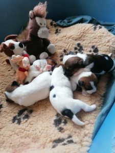 P-Wurf Quila of Fawnhill x Everest First Quick and SmartGeboren: 11.8.20222 Rüden und 3 Hündinnenweiss-rot / rau P-Wurf, 3 Hündinnen und 2 Rüden P-Wurf